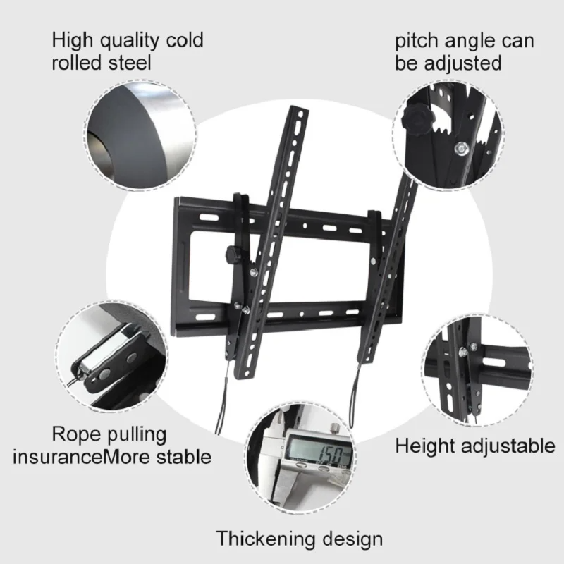 Parameter Information: Type: Adjustable Type Applicable Size: 26 – 65 inches Material: Iron Distance From the Wall: 47MM Max Capacity: 60KG / 132.3LB Up and Down Tiltable Angle: 15 degrees Fit for: most HDTV flat panel TV, LCD TV, LED TV, fit for Plasma TV. fit for Sony / Samsung / TCL / Sharp / Plasma TV.