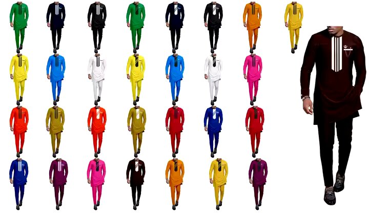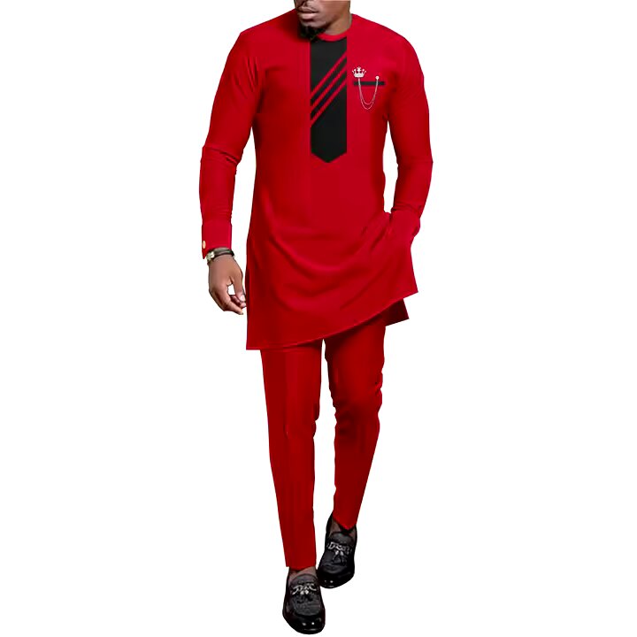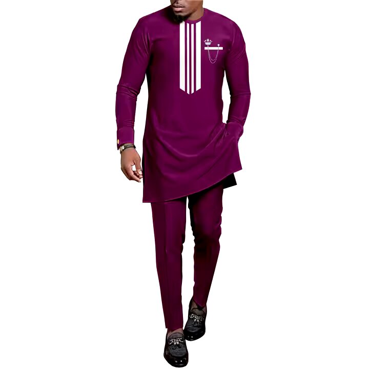 Optez pour ce magnifique costume africain pour hommes, idéal pour les occasions spéciales comme les mariages, les cérémonies et les événements festifs. Ce modèle en bleu royal est orné de détails géométriques modernes qui ajoutent une touche d'élégance tout en respectant les codes vestimentaires traditionnels africains.
