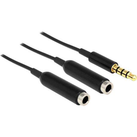 This audio stereo jack cable by Delock can be connected to a free stereo jack female port of your iPhone, iPod, iPad etc. in order to get two stereo jack female interfaces. Thus two persons can easily listen to music, through their headphones. Furthermore this splitter cable supports the microphone function for both stereo jack female connector, so that two persons can have a conversation at the same time. Thus this cable is suitable for telephone conference, Skype calls or similar.