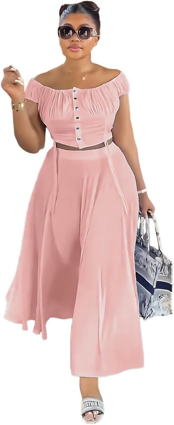 Ajoutez une touche de sophistication et de féminité à votre garde-robe avec cette élégante robe longue rose. Conçue pour un look chic et décontracté, cette robe présente un joli décolleté épaules dénudées et un détail boutonné à l'avant qui ajoute du caractère. La coupe fluide et la ceinture subtilement intégrée mettent en valeur la silhouette tout en offrant confort et style.