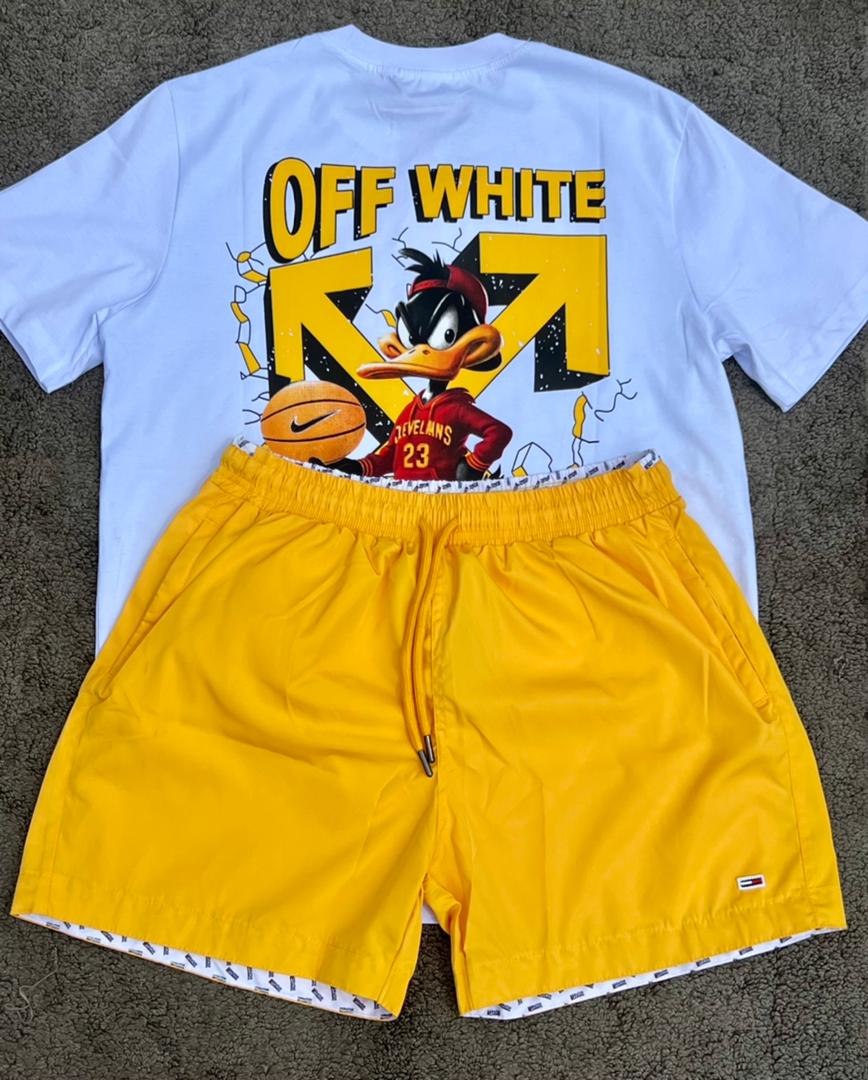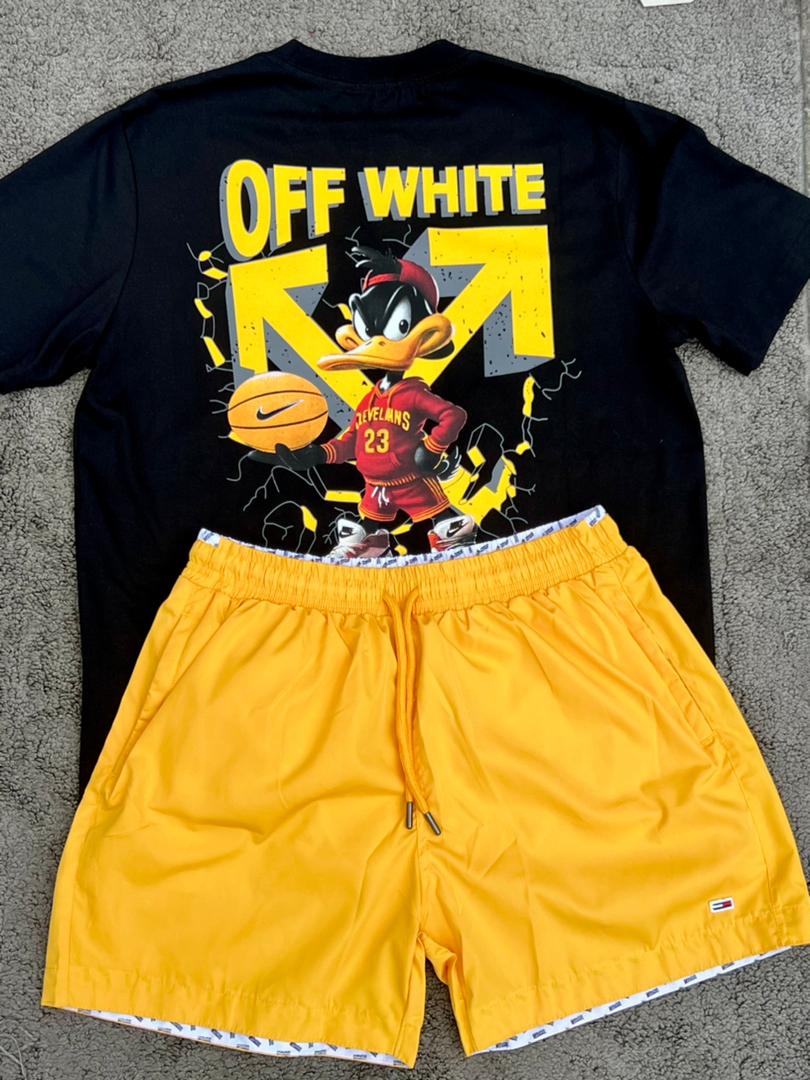 Affirmez votre style avec cet ensemble tendance composé d’un T-shirt "OFF" et d’un short "Moncler". Parfait pour l'été, ce combo léger et confortable allie élégance décontractée et esprit sportif.