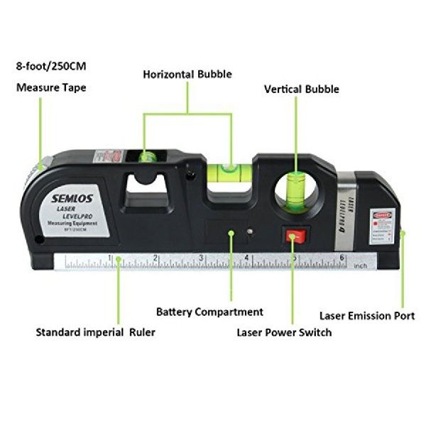 This multipurpose laser level can be used to align vertically and horizontal as it projects a beam laser light. It has a tape measure and adjusted standard and metric rulers. Use to hang shelves and cabinets, tiles and frames accurately, check leveling on tiles and hang wall paper.