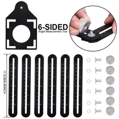A great all around measuring tool. This product has 6 folding fully adjustable Arms with exact Laser print measurements making any DIY or industrial job easier. Don't waist time writing down measurements, just fold the ruler into your desired angle and cut away!