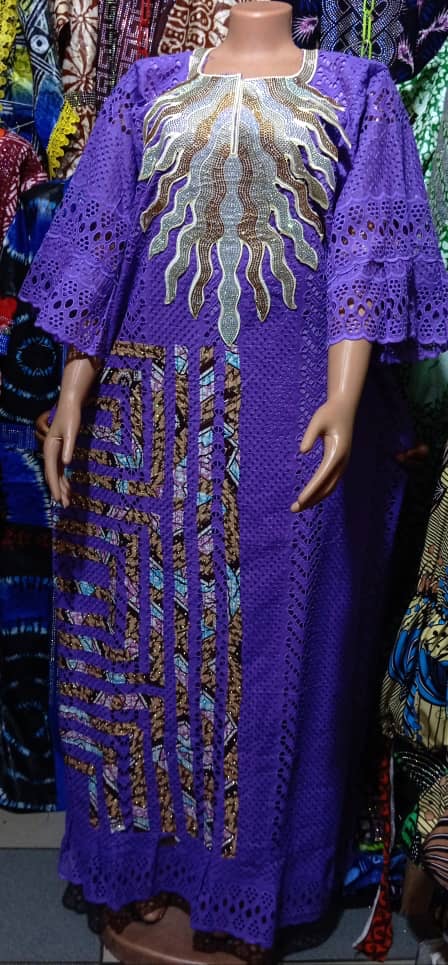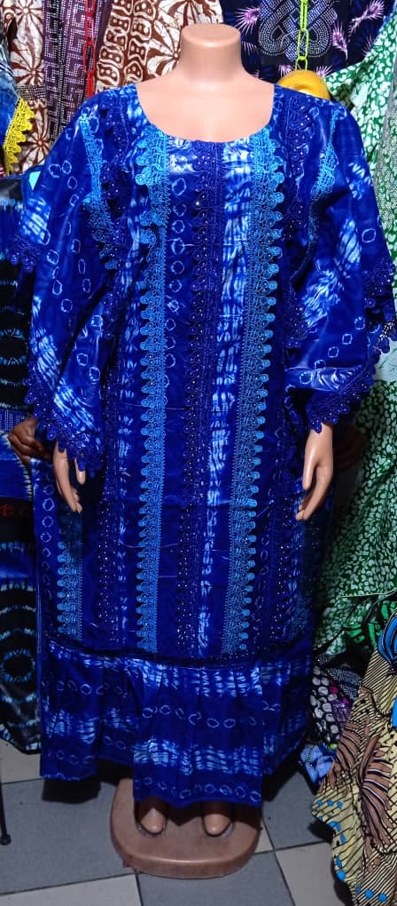 Cette superbe robe traditionnelle en tissu wax est l'incarnation parfaite de l'élégance et du style africain. Avec son motif circulaire bleu et noir vibrant, elle attire l'œil tout en vous offrant un confort exceptionnel. Ses manches amples et sa coupe longue lui confèrent une allure majestueuse, idéale pour les occasions spéciales ou pour affirmer votre style au quotidien.