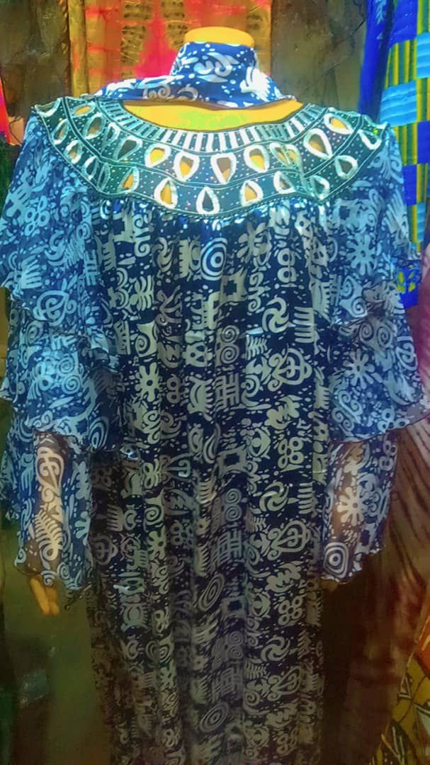 Ajoutez une touche d'élégance et de tradition à votre garde-robe avec cette superbe robe traditionnelle bohème aux motifs africains. Ce modèle fluide et ample, idéal pour toutes les morphologies, se distingue par son imprimé bleu et blanc riche en symboles et motifs ethniques. Le col est orné de détails ajourés qui apportent une touche de sophistication supplémentaire à cette pièce unique.