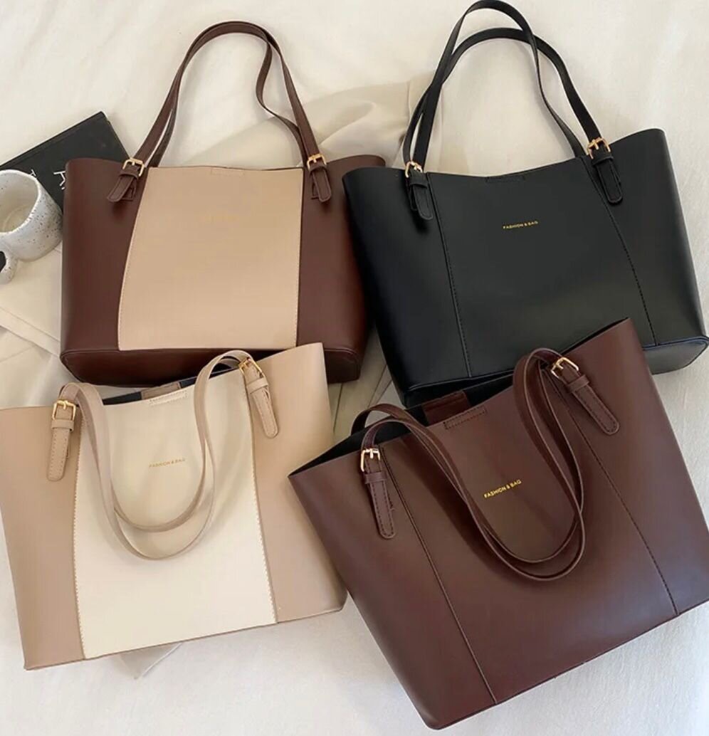 Sac Cabas Bicolore en Cuir Synthétique - Grand Format