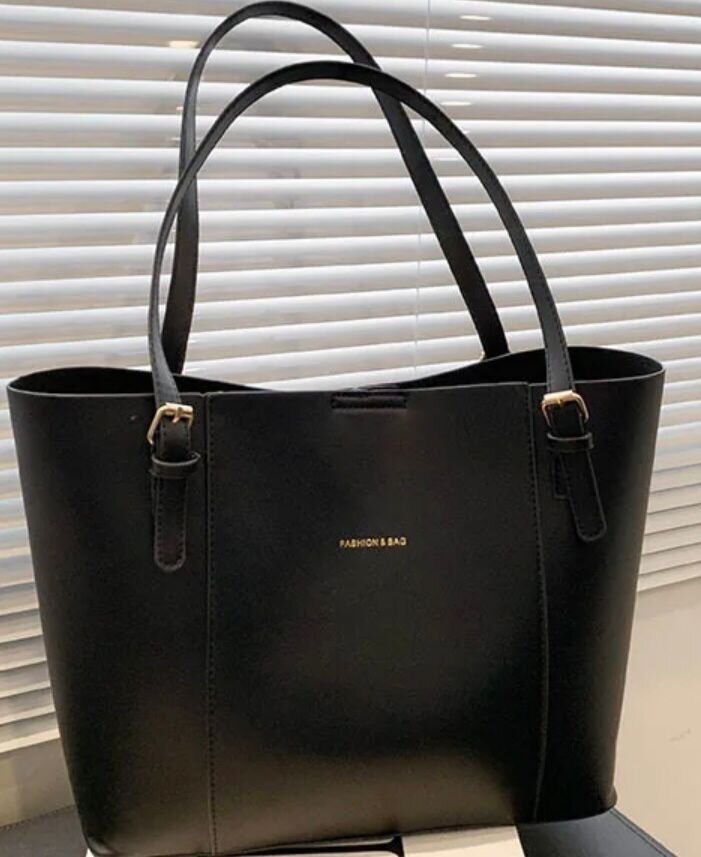 Les doubles anses réglables permettent un port confortable à l'épaule ou à la main, tandis que la finition dorée des boucles ajoute une touche de luxe à ce modèle minimaliste. Le contraste de couleurs crée un look moderne, facile à associer avec vos tenues du quotidien.